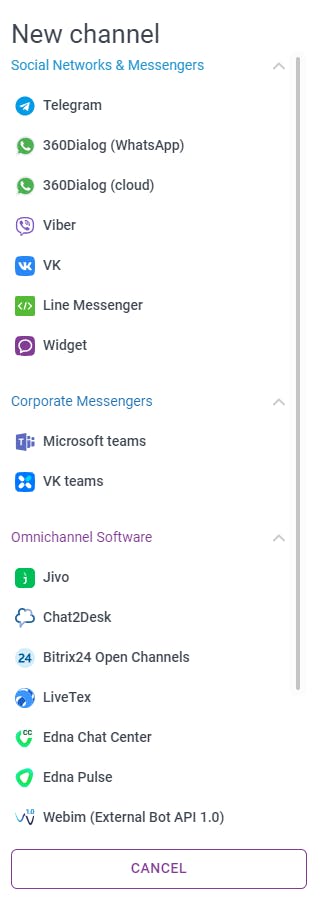 Configure the agent channel on the platform so that it begins to appear in the line settings.