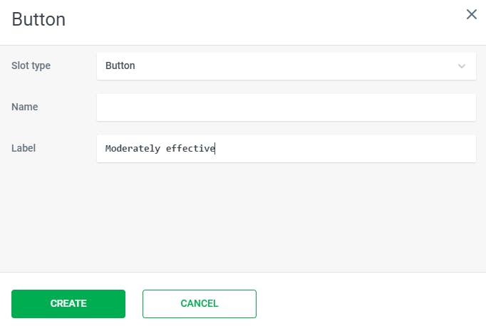 labeled “buttons 2”. Use the buttons to specify the answer options: “Extremely effective” and “Quite effective”.
