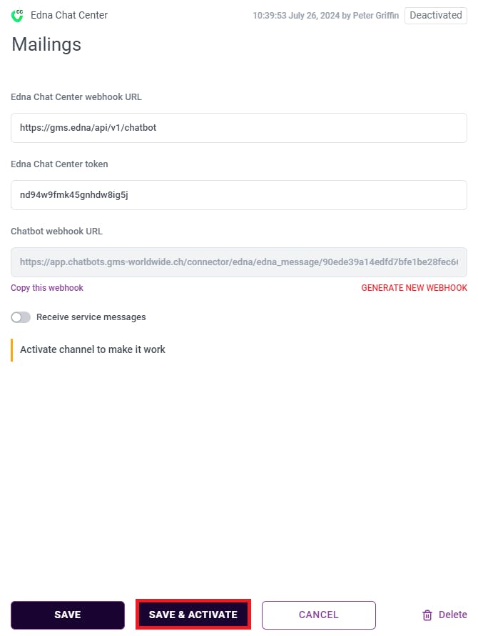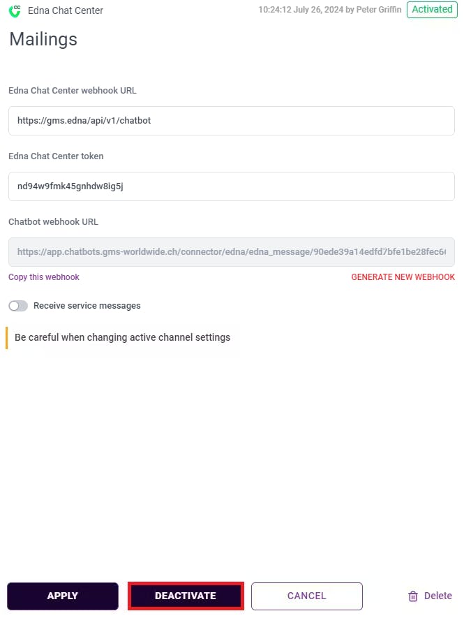 Important: Theis connected to communication channels through Edna technical support.@Bot