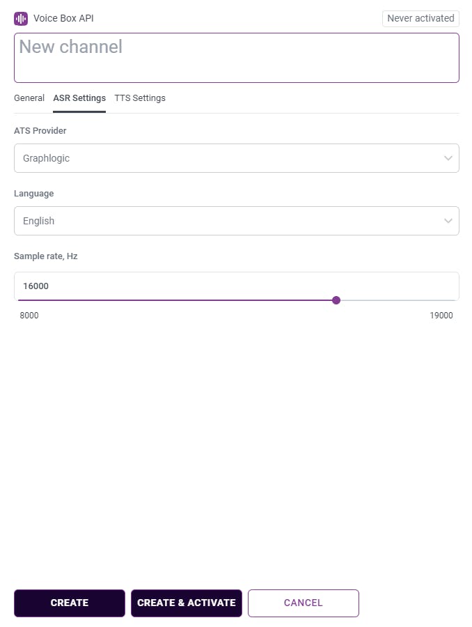 ASR settings tab is where the settings for receiving the bot user's voice are set, and the TTS settings tab is for the bot's voice generation settings.