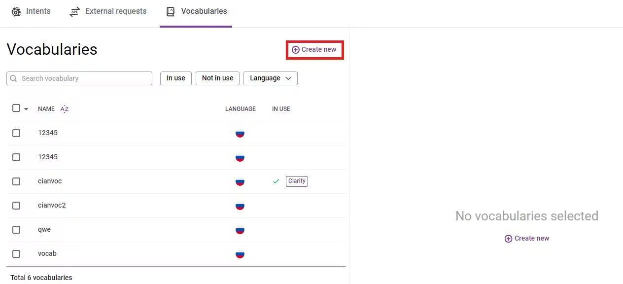 Confirm the action in the modal window by clicking the DELETE VOCABULARY button.